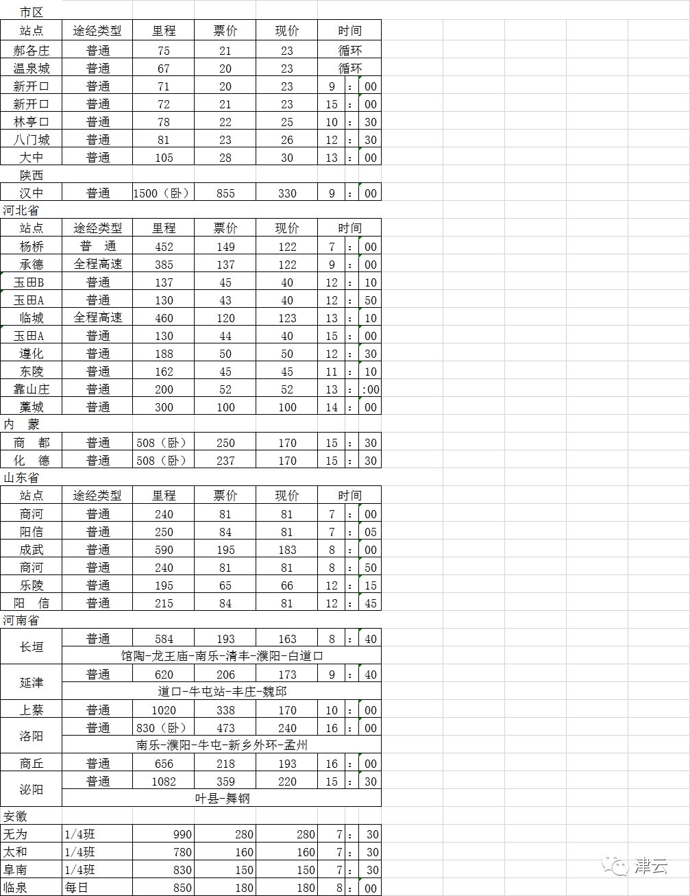 各站时刻表都在这里了!