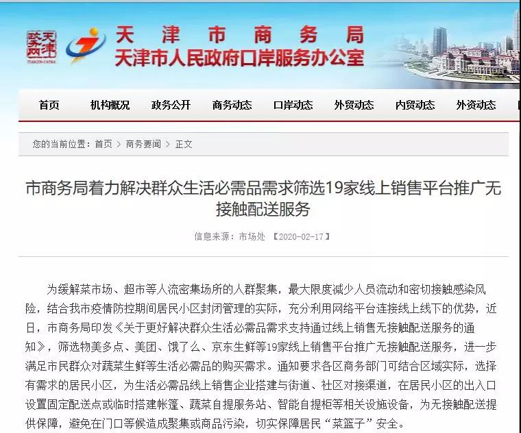 津云新闻讯:近日,市商务局印发《关于更好解决群众生活必需品需求支持通过线上销售无接触配送服务的通知》筛选19家线上销售平台推广无接触配送服务,满足市民群众对蔬菜生鲜等生活必需品的购买需求。