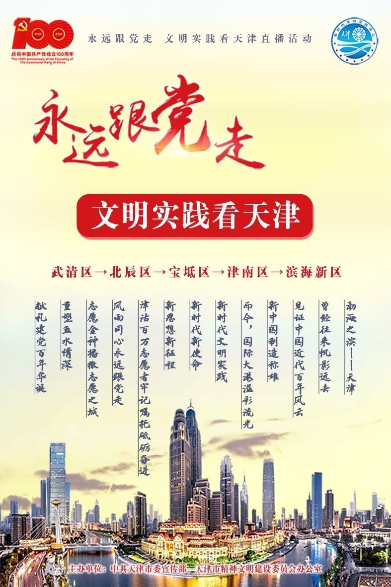 宝坻区坚决贯彻文明实践中心试点建设的核心任务,不断提升群众的参与度,推动党的创新理论深入人心、落地生根。在全国上下积极开展党史学习教育之际,9月7日的直播活动中,在宝平街道景苑社区新时代文明实践站“四史教育馆”内,我们将听到身边人讲述身边的故事、身边的人物和宝坻战役等历史事迹;宝坻的文艺骨干将通过歌声唱响《红色记忆》,引导广大党员干部群众从党的百年奋斗历程中汲取智慧和力量。