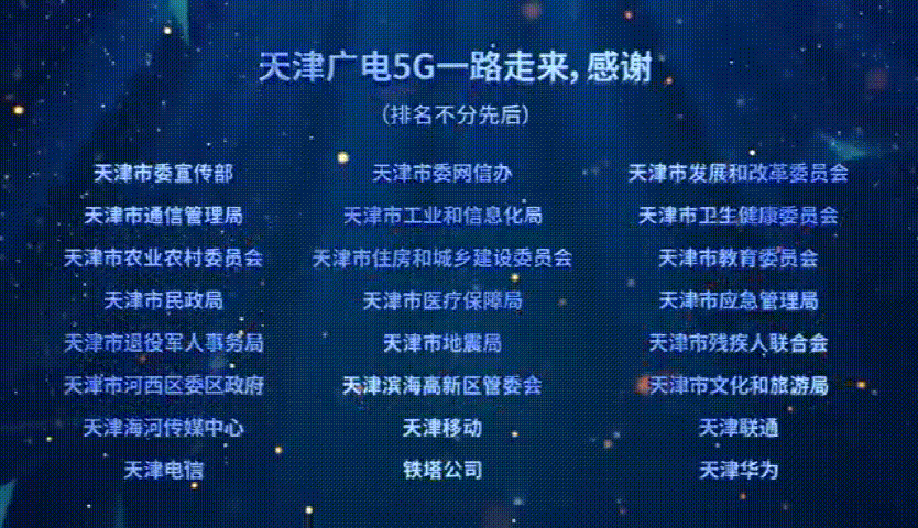 天津广电5G一路走来,感谢市相关委办局、各合作伙伴的大力支持,让我们携手并进,共襄盛举!