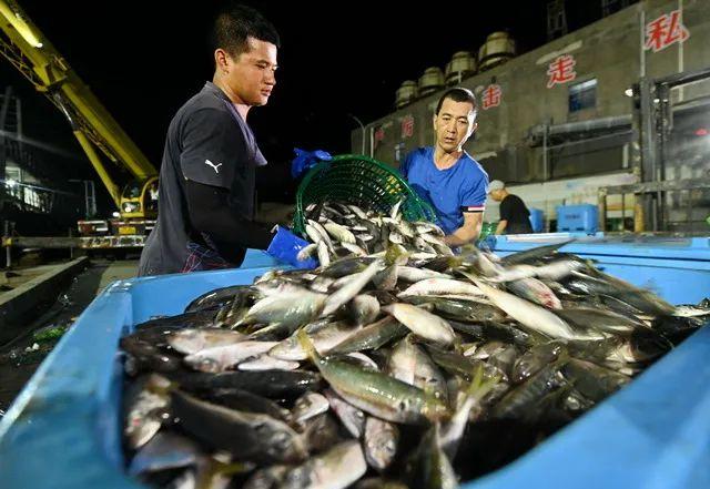 开渔以来,福建宁德各渔港陆续迎来满载而归的渔船,渔民喜获满舱渔获,渔港和码头呈现出一派繁忙景象。图为26日,工人在宁德市霞浦县三沙中心渔港的码头上分装渔获。