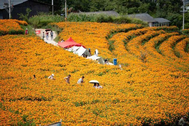 进入初秋,云南省维西县保和镇永春村近200亩万寿菊进入最佳观赏和采收期。维西县积极探索农业产业结构优化,将万寿菊作为一种经济作物引进种植,在拓宽农民增收渠道的同时,也为维西县城周边增加了一道靓丽风景线。