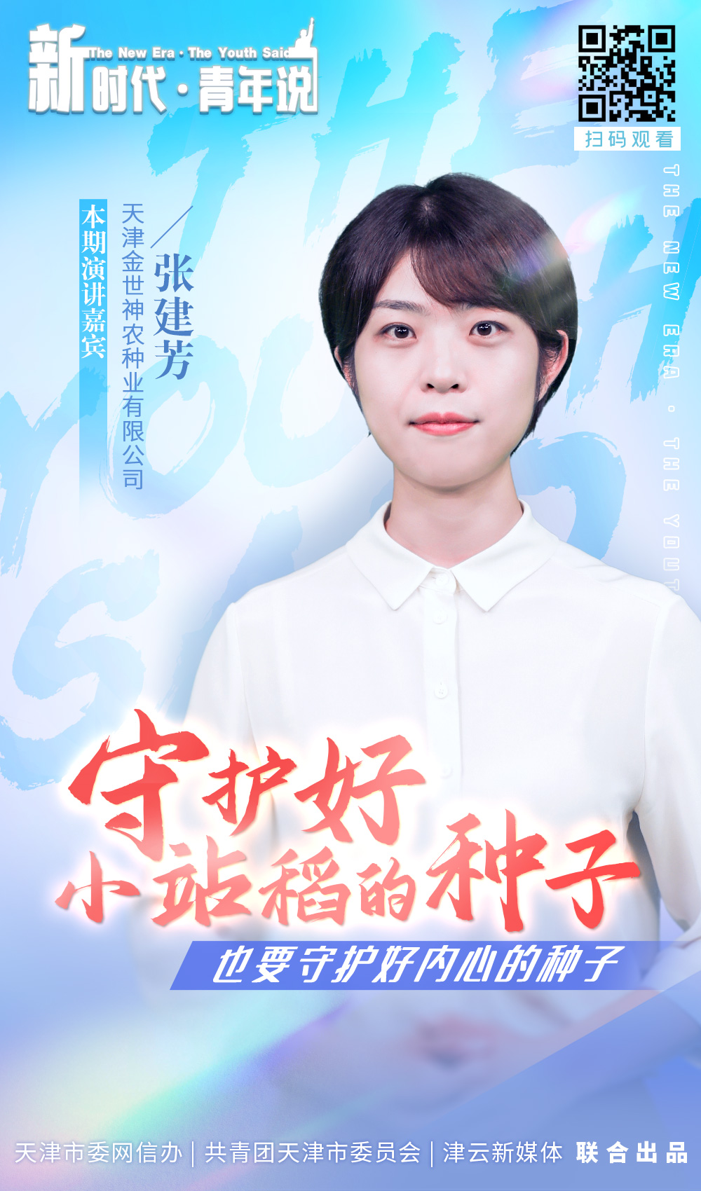 津云新闻讯:青春由磨砺而出彩,人生因奋斗而升华。为迎接中国共产党第二十次全国代表大会的胜利召开,深入贯彻天津市第十二次党代会精神,由天津市委网信办、共青团天津市委员会指导,津云新媒体制作推出的网络演讲节目《新时代·青年说》于8月26日正式上线,该节目以青春的力量、青春的涌动、青春的创造为核心内容,来自天津各行各业的青年榜样以网络作为传播载体,通过演讲的形式呈现他们的奋斗故事。该系列节目将持续通过津云app、北方网、“津门网络大思政”平台、学习强国天津学习平台、网信天津、津彩青春等平台更新,期待您的关注。