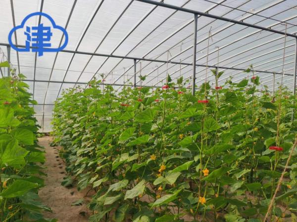 预报的小雨还没来到,静海区独流镇下圈村蔬菜种植户叶伯勇有些着急了,苫盖在蔬菜大棚上的保暖棉被必须得尽快掀开,大棚外面的两处通风口要扩大进风量,以保证给大棚里的黄瓜通风降温,为了加快通风速度,叶伯勇背起喷雾器给黄瓜叶洒水降温。