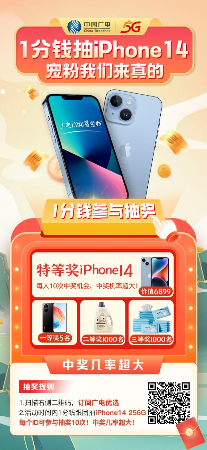 【广电192宠粉团】第一波, 1分钱抽iPhone14、荣耀手机等惊喜大奖,快来参与吧!