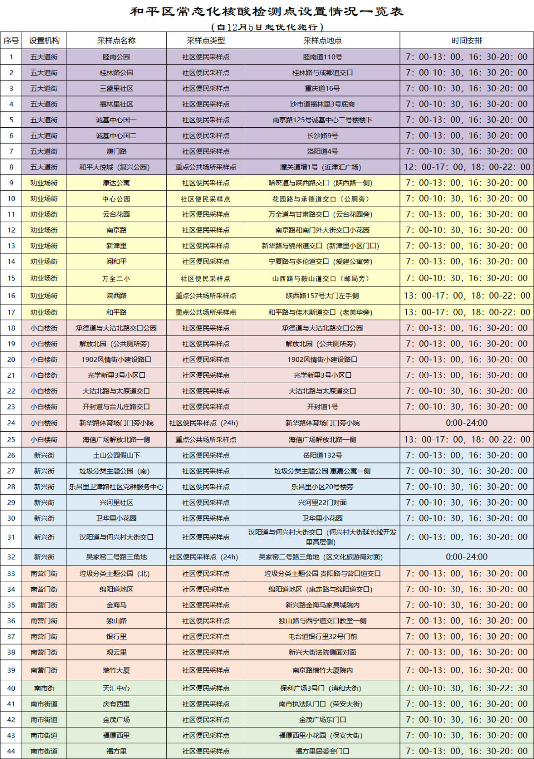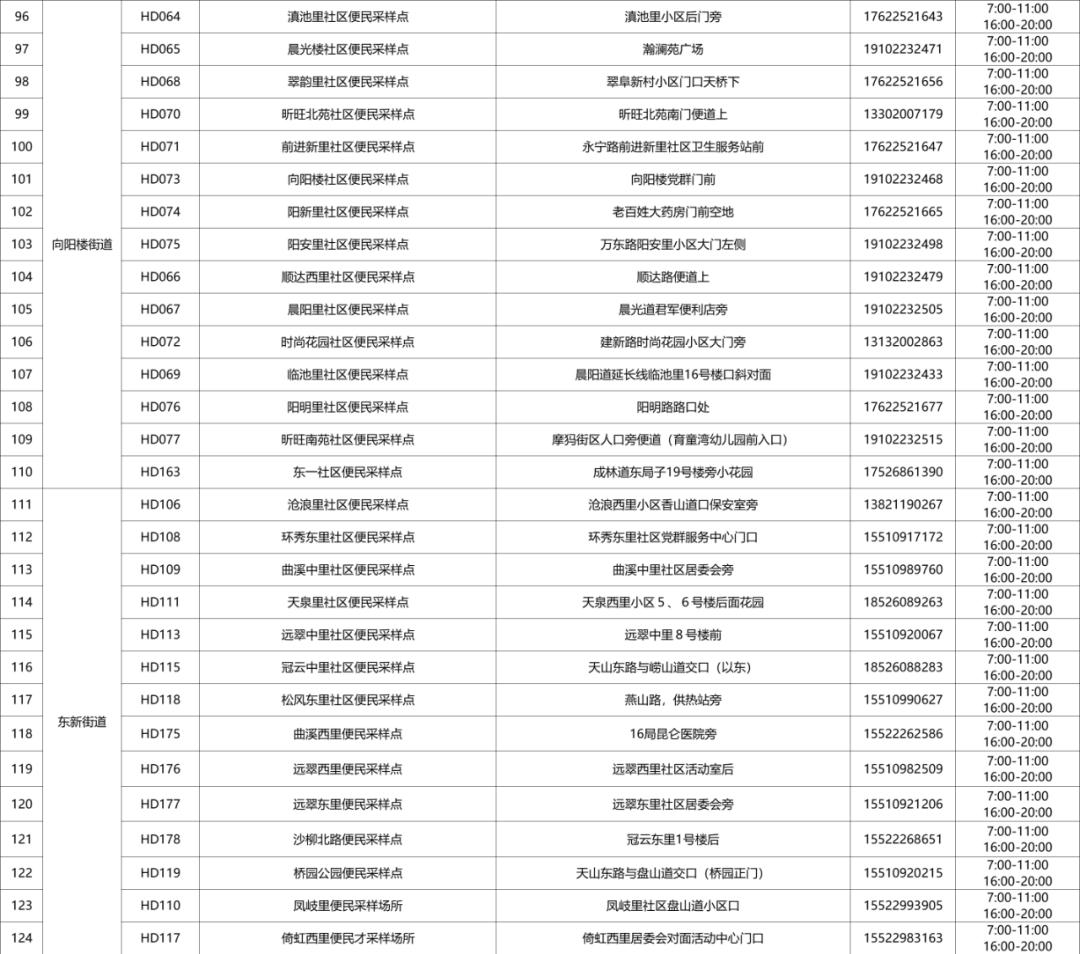 常态化核酸检测便民采样点明细表(12月5日)