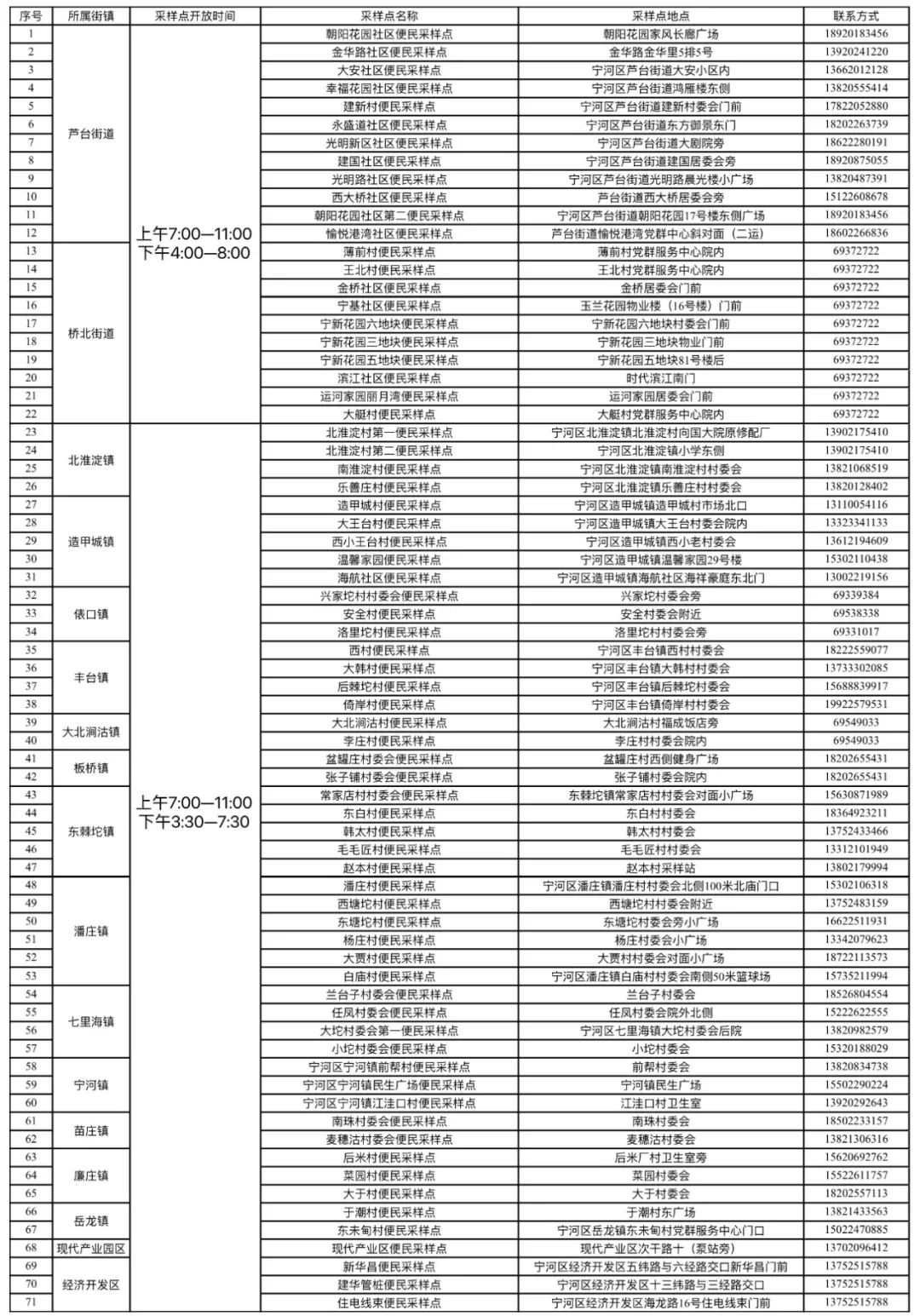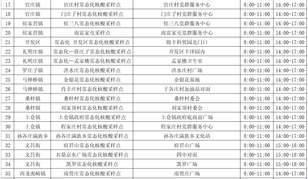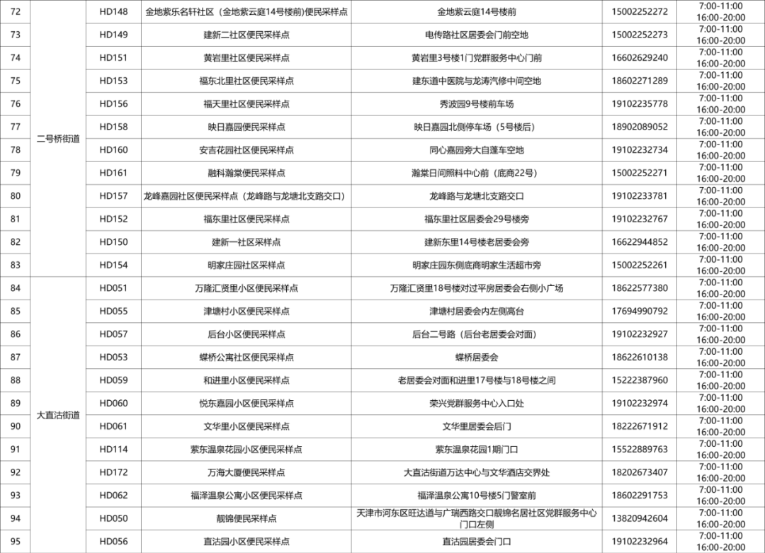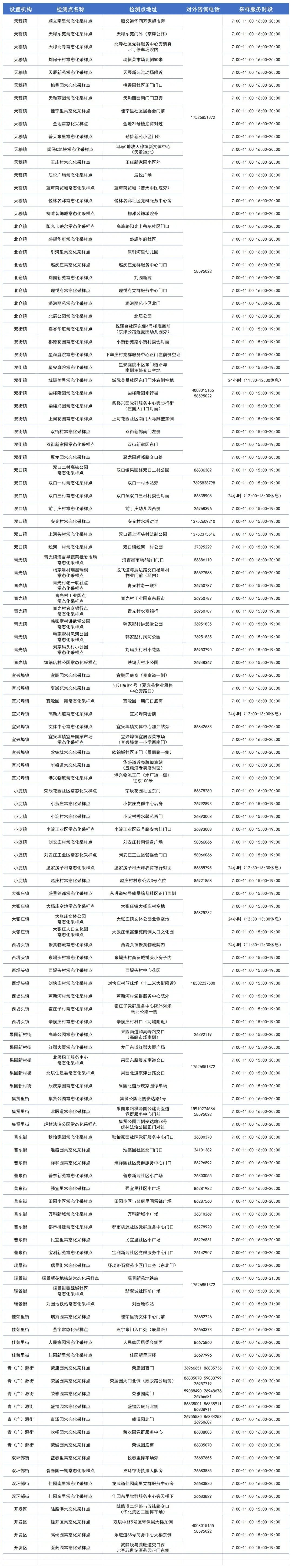 详细《武清区常态化便民核酸采样点信息表》,具体以各属地镇街园区采样点安排为准。区疫情防控指挥部将根据疫情防控形势动态调整,请广大居民及时关注,特此公告。