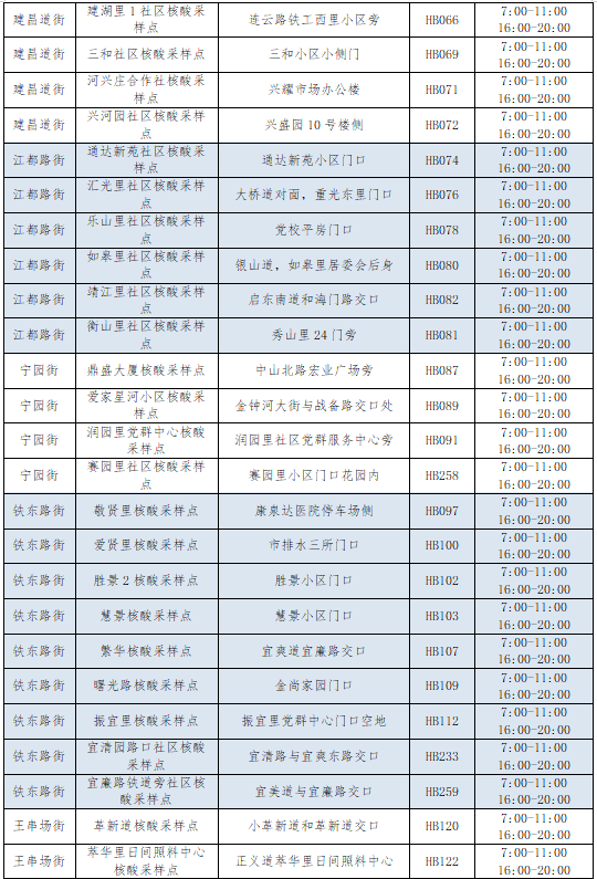 相继发布最新的常态化核酸采样点位
