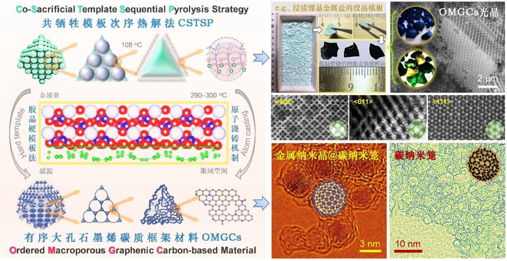 天津大学“英才计划”特聘研究员吉科猛团队以金属盐和有机胶晶为原料模板,开发出了一种以石墨烯型碳、金属纳米晶等为基本功能单元构筑而成的高结晶度、高导电性三维有序大孔框架材料(简称OMGCs)。