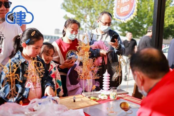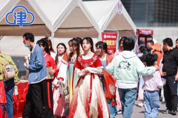 “‘五一’期间,我们提供了100多个文创和餐饮的摊位,其中,有些非常新颖的文创产品呈现给天津的市民和游客,文化中心的博物馆、美术馆、图书馆和大剧院呈现了非常多的演出展览等。从早上9点开始,我们有汉服表演、喷泉表演、网红小火车巡游等,夜景灯光秀融合音乐喷泉表演的形式,呈现文化中心优美的景色。”天津津悦城商业管理有限公司副总经理刘莹说。