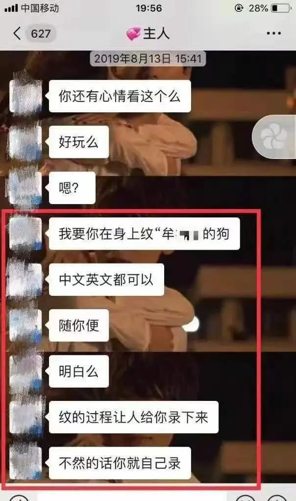 根据披露的微信聊天记录显示,牟某翰多次对包丽施加语言暴力,其中包括要求包丽称自己为“主人”、让包丽在身上文身“我是牟某某的狗”、威胁将包丽的裸照发到网上、甚至要求包丽为他怀一个孩子,“然后去打掉、留下病历单”“做绝育手术,然后把病历单给我”等。
